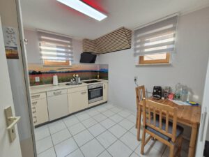 Sie zeichnet sich durch eine zentrale Lage und dennoch ruhige Umgebung aus. Das Souterrain hält das Klima in der Wohnung konstant; gerade im Sommer nur zu empfehlen. Eine voll ausgestattete Küche, ein geräumiges Bad und ein großes Wohn-/ Schlafzimmer laden zum Verweilen ein. Ein Parkplatz auf dem Grundstück sowie die Möglichkeit einen Anhänger oder ein größeres Fahrzeug abgeschlossen abzustellen, runden das ganze Ensemble ab.